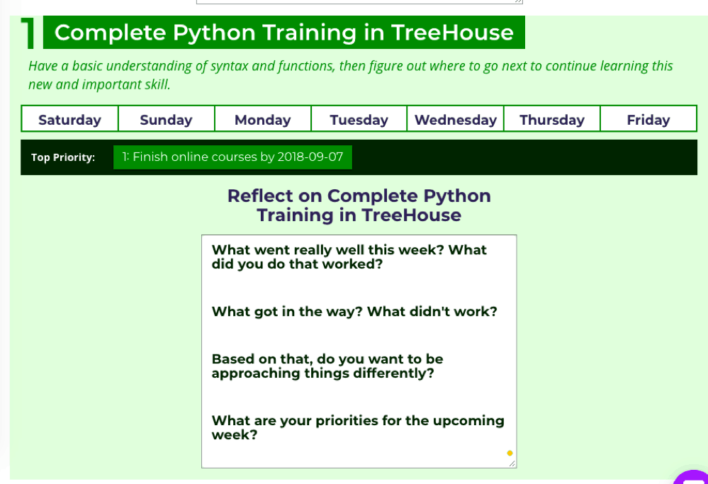 At the beginning of each day, you’ll be reminded of your active goals and then be asked to write an achievable intention that relates to the goals you have set. The software encompasses many aspects of the GTD system developed by David Allen in his book, Getting Things Done: The Art of Stress-Free Productivity.